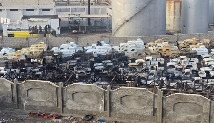 বন্দরে সারিবদ্ধভাবে দাঁড় করিয়ে রাখা ডজনের মতো যান লক্ষ্য করে হামলা চালানো হয় বলে ইয়েমেনে সৌদি সমর্থিত জোট থেকে প্রকাশিত এক ভিডিওতে দেখা যায়।
